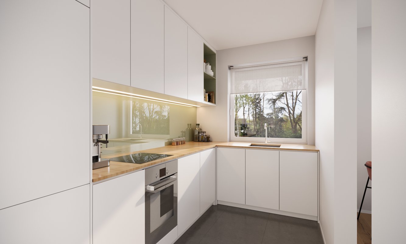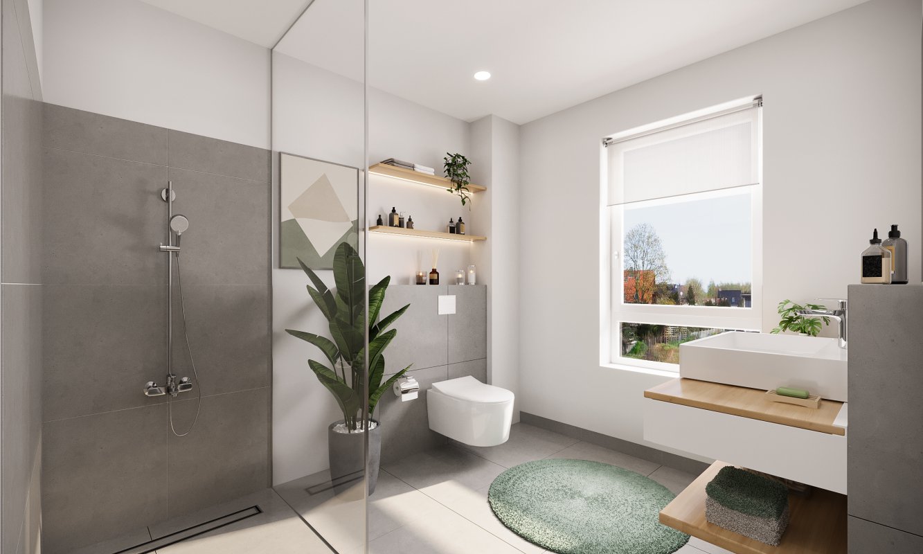 Die Drei-Zimmer-Wohnungen bestechen durch eine klare Grundrissgestaltung – mit lichtdurchflutetem Wohn-, Ess- und Kochbereich. Die Bäder werden mit einer bodengleichen Dusche sowie Badobjekten namhafter Hersteller ausgestattet. Ein Hauswirtschaftsraum bietet Platz für Vorräte und Anschlüsse für Waschmaschine und Wäschetrockner.