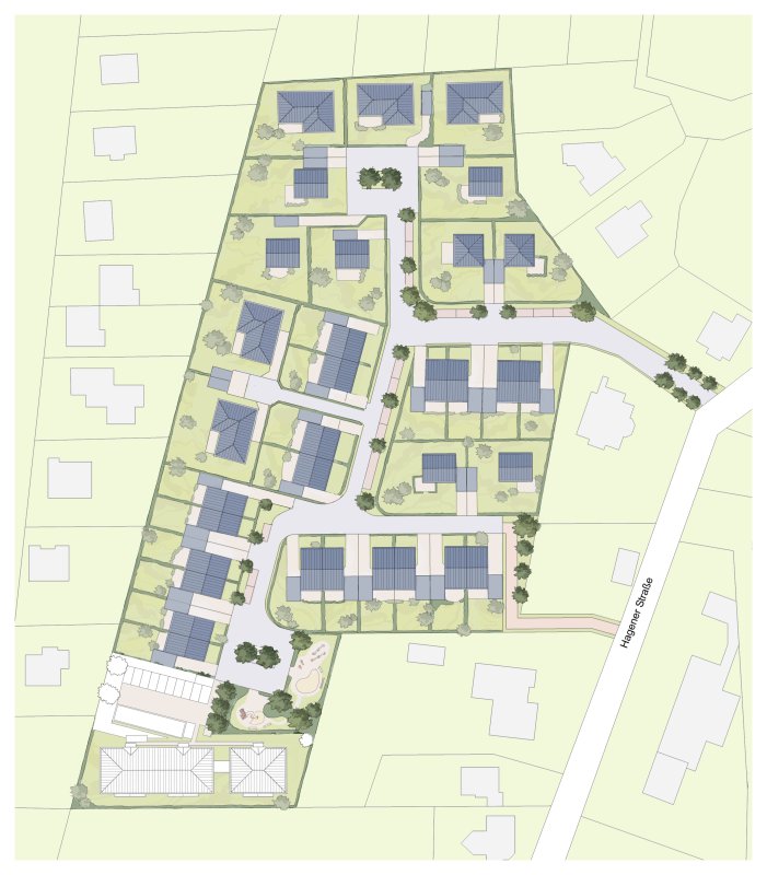 Das klassisch-moderne Gebäude mit nur 8 Wohnungen fügt sich harmonisch in das neue Wohngebiet an der Hagener Straße ein.