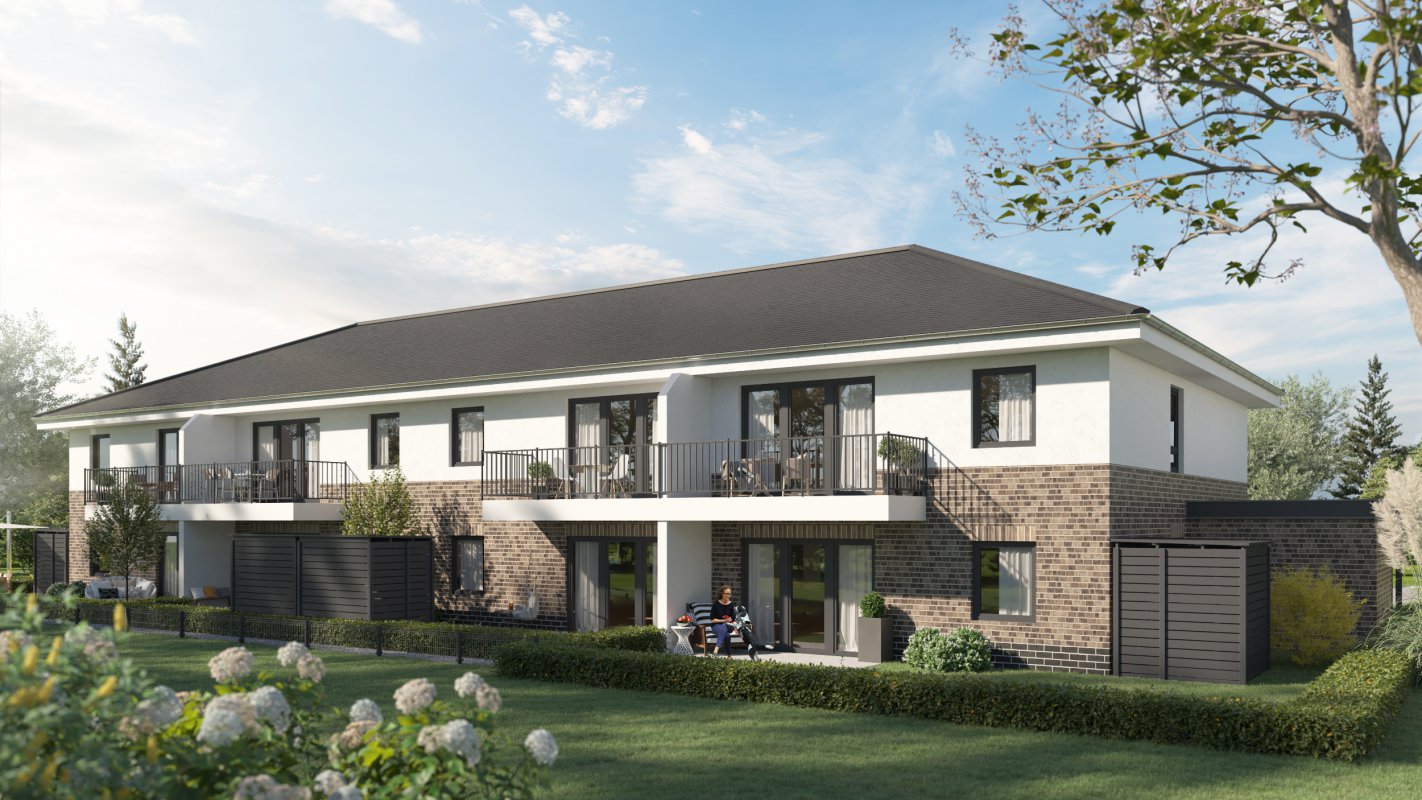 Das klassisch-moderne Gebäude mit nur 8 Wohnungen fügt sich harmonisch in das neue Wohngebiet an der Hagener Straße ein.