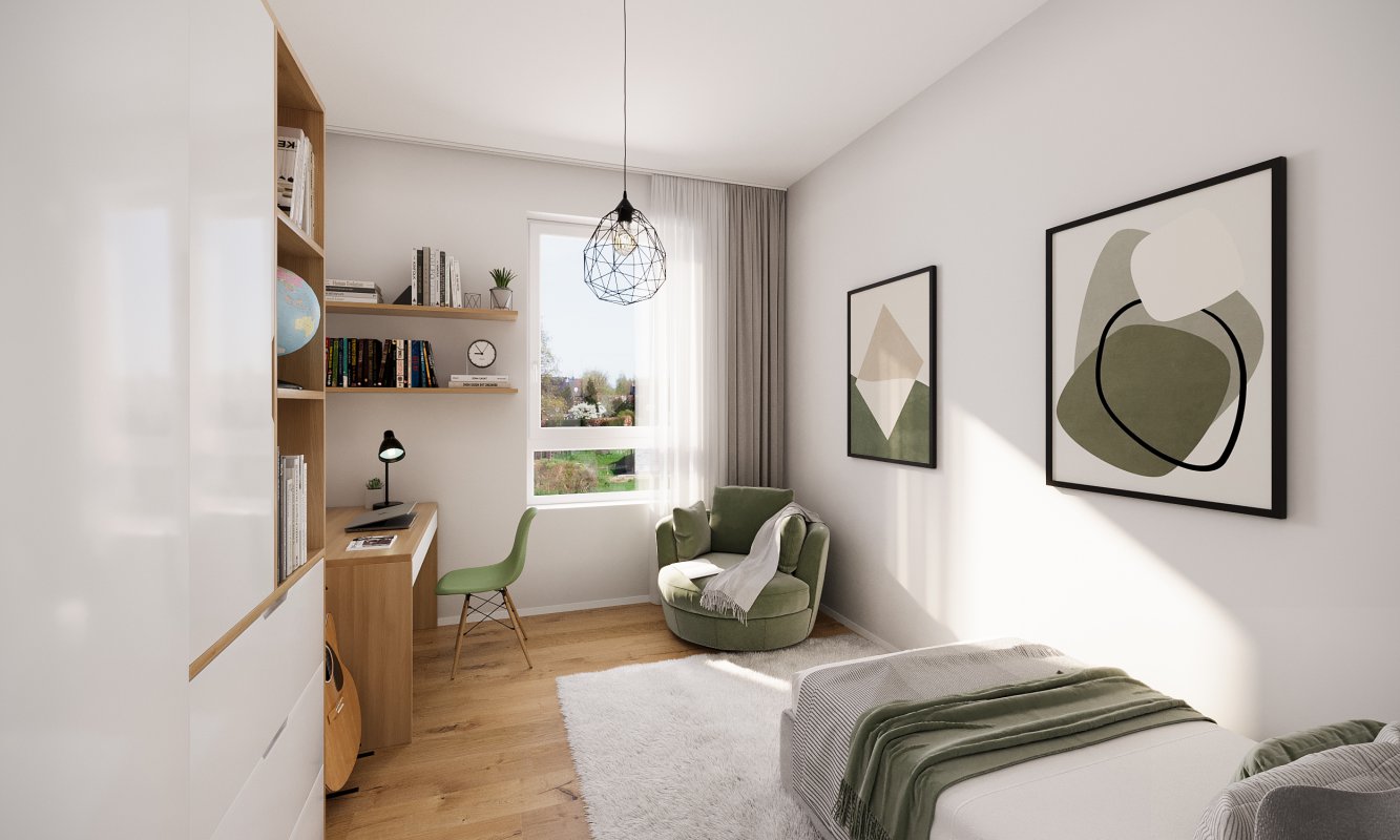 Die Drei-Zimmer-Wohnungen bestechen durch eine klare Grundrissgestaltung – mit lichtdurchflutetem Wohn-, Ess- und Kochbereich. Die Bäder werden mit einer bodengleichen Dusche sowie Badobjekten namhafter Hersteller ausgestattet. Ein Hauswirtschaftsraum bietet Platz für Vorräte und Anschlüsse für Waschmaschine und Wäschetrockner.